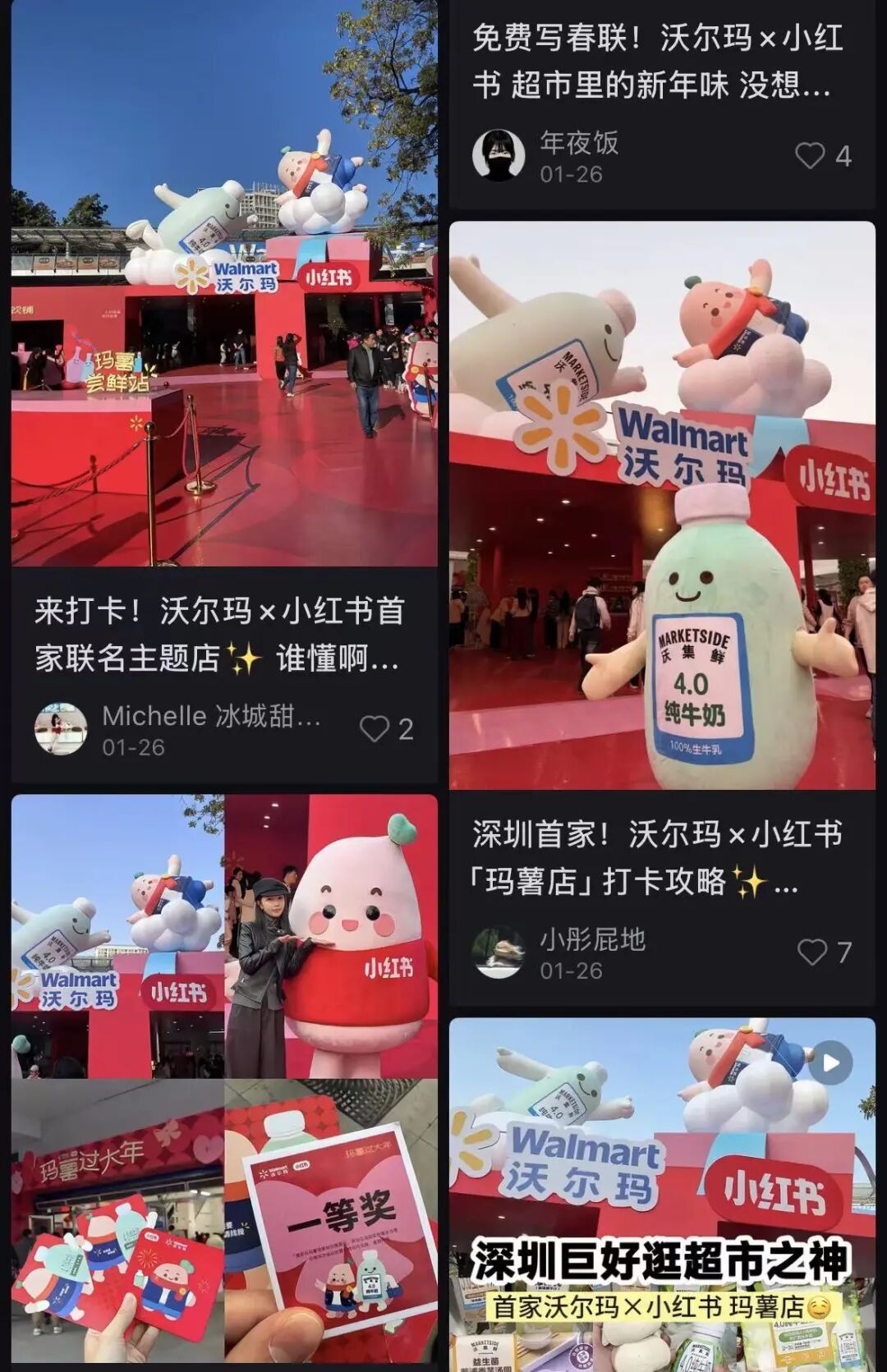 在进入中国的第30个年头,沃尔玛联名小红书在深圳开出了两家“玛薯店”,一家是1月7日开业的蛇口店,另一家是在2月7日开业的下沙社区店。