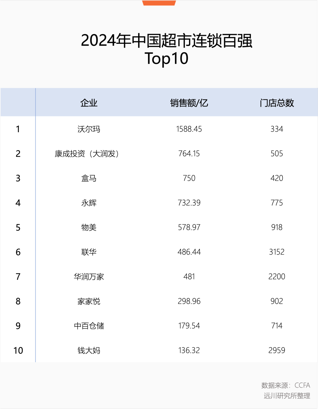 在中国市场,沃尔玛继续蝉联中国连锁经营协会(CCFA)2025年发布的《中国连锁百强》榜首,上榜企业包含了商超、百货以及电器、家居等专业经营店形态。同时,从2021年起,沃尔玛持续领跑CCFA《中国超市百强》排名[3]。