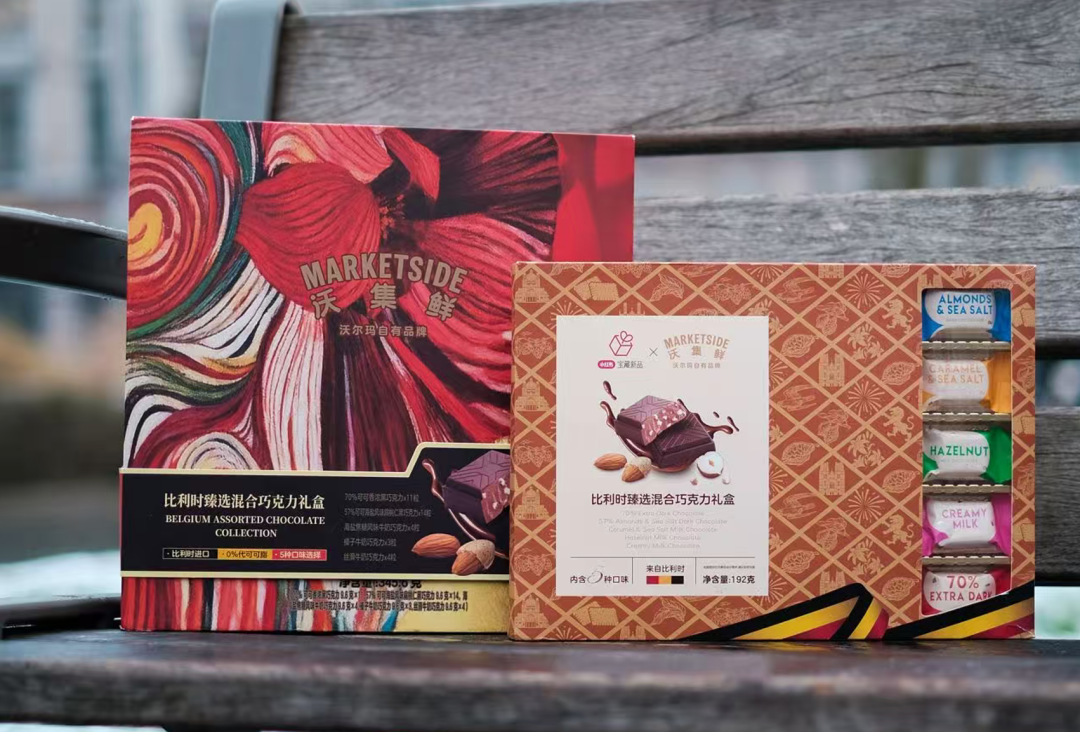 通过沃尔玛全球供应链直接进口的比利时臻选巧克力,一盒49.99元,含有20片独立小包,零代可可脂的配方符合当下轻负担饮食的需求,尤其考虑到中国消费者不耐甜腻,在口味上也做了对应改良。